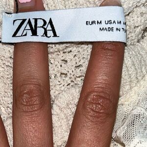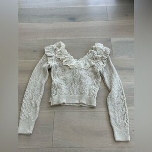 ZARA CROCHET lace RUFFLEd SWEATER sz M medium cream