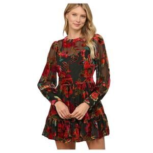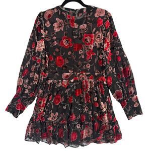 Fate Womens Large Floral Velvet Mini Dress Sheer Romantic Cottagecore