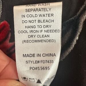 Black sheer overlay with red velvet floral design