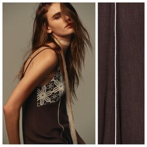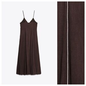 NWT. Zara Chocolate Viscose Embroidered Strappy Midi Dress with a V-neck and thin straps. Features contrasting embroidery detail. Side hidden in-seam zipper closure. Size M. Ref. 3897/169. Pit to pit 16,5" flat, waist 16", length 52". Only Dress is for purchase. 1047.