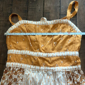 Aeropostale Size Medium Tie Back Milk Maid Style Dress Dark Yellow / Cream Tan