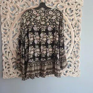 AEO ruffled tiered bell sleeve black colorful floral tunic top is in excellent, gently used condition. No flaws.