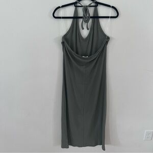 Gap Factory Olive Green Ribbed Halter Midi Stretch Dress |Size XL| NWT
