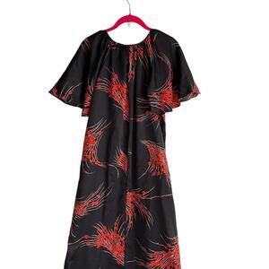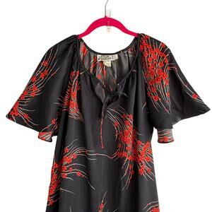 VINTAGE HILO HATTIE'S Black and Red Floral Wide Sleeve Ladies Dress, M