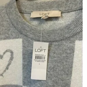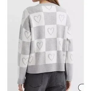 NWT LOFT Gray Heart Checkered Love thick soft Sweater Size Large MSRP $89.95