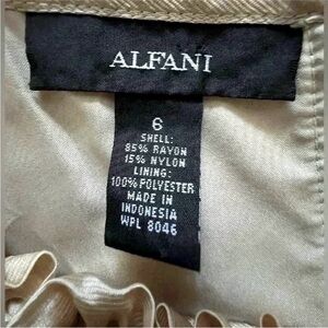 This sophisticated sleeveless blouse by Alfani features a cascading ruffle detail that adds a touch of elegance. Crafted in a tan hue, its lightweight fabric drapes beautifully, making it perfect for both professional and dressy casual settings.
