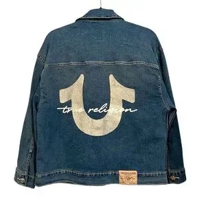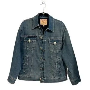 True Religion Oversized Glitter Denim Jacket Size: Medium