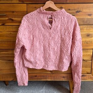 Stylish pink long sleeve top with a unique textured design. Perfect for casual wear.