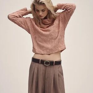 ANTHROPOLOGIE Textured Funnel-Neck Top - Pink Textured Long Sleeve Top