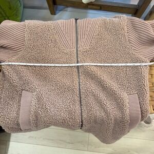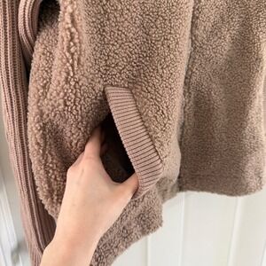 Varley Ardley Zip Through Knit Jacket Tan Brown Teddy Sherpa Size Small