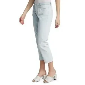 FRAME like new split screen light wash denim Le Slouch straight cropped jeans