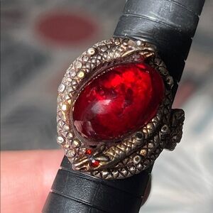 Vintage Coiled Snake Serpent Flashy Red Cabochon Fashion Ring Adjustable