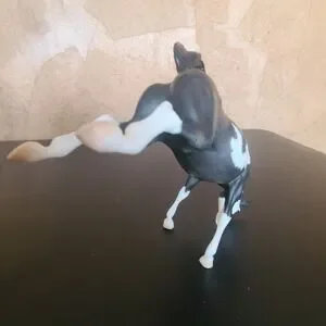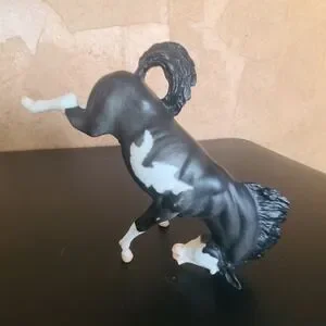 Keywords: Model Horse, Equestrian Decor, Toy Figurine, Horse Collectible, Pinto Horse, Overo Pattern, Horse Lover Gift, Shelf Decor, Realistic Animal Toy, Breyer Horse, Mustang, Blue Roan Horse