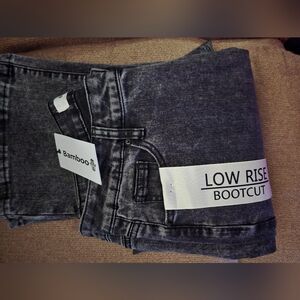 Bamboo Low Rise Super Soft Bootcut Jeans in Stone Wash Black.