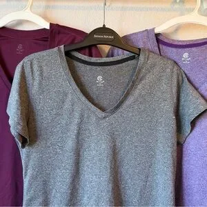C9 by Champion Athletic and Activewear Short Sleeve V-Neck Top. Its moisture-wicking fabric keeps you cool and dry, and has 4-way stretch, ensuring optimal comfort during workouts. It’s perfect for any activity, whether it’s running, walking, lifting, hiking, tennis, pickleball, or any other sport or activity. Ideal for active wear, layering, or any casual outing.