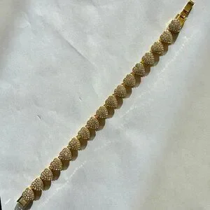 NWT Sparkly Crystal-Studded Gold Heart 8" Bracelet