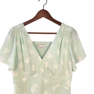 Abercrombie & Fitch Mint Green Floral Flutter Sleeve Smocked Mini Dress Small