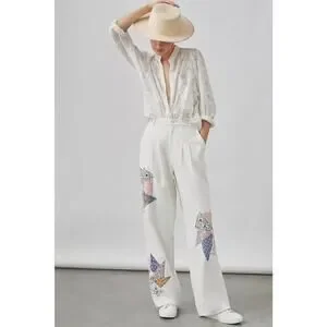 New Anthropologie x Forever That Girl Quilted Patchwork Trousers Size XL