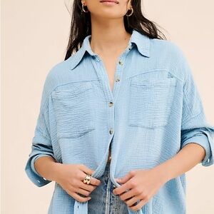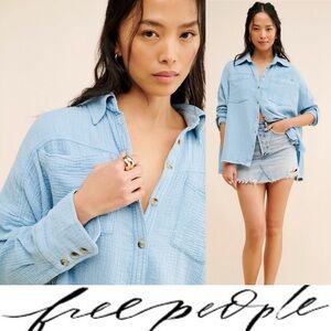 Elevate your style with this chic blue button-up top from Free People. Perfect for any occasion, this top offers a relaxed fit and timeless design.
