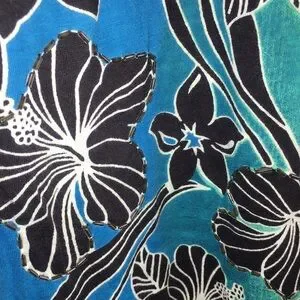 Color: Blue with black & white floral print