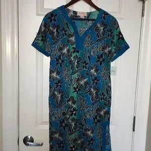 Coral Bay Blue Floral Cotton Tunic Top Swim Cover Up Dress | Size M (NWT)