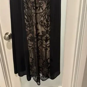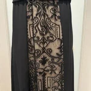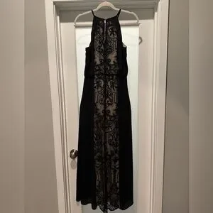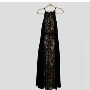 London Times Black Nude Lace Chiffon Halter Maxi Evening Gown – Size 6
