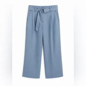 Ecru “Franklin” Wide Leg Cropped Pant in Blue Broken Plaid. These polished, modern trousers feature a flattering high-rise silhouette with a removable self-tie belt and wide leg cropped length for an effortlessly chic look.