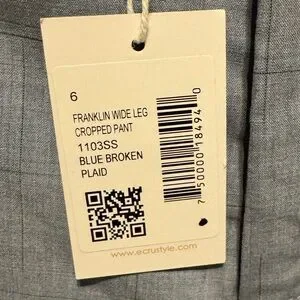 Ecru Franklin Wide Leg Cropped Pants Blue Broken Plaid Size 6 NWT