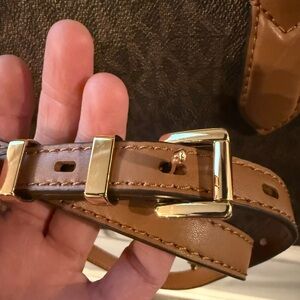 • Gold-tone exterior hardware; interior slip pocket & zip pocket