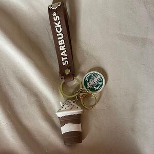 Starbucks Brown and White Frappacino Key Chain and ring to attach to a bag