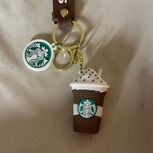 Starbucks keychain and clip with a coffee cup design to dress up your bag! Includes logo tag and brown strap.