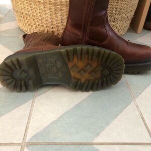 Beautiful butterscotch brown Chelsea boots with square toe and low platform sole. side zip.