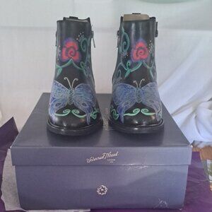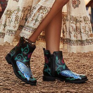 Hand Painted Colorful Butterfly Ankle Boots 8.5
