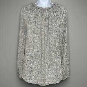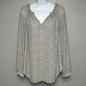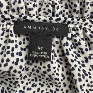 Ann Taylor Black White Puff Sleeve Ruffle Neck Flowy Tunic Blouse Womens Sz M