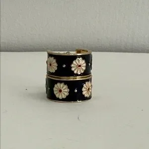 These medium-width hoops have a playful retro feel while still being easy to wear. The floral enamel detailing adds a sweet, mod-inspired touch that pairs perfectly with casual outfits or summer looks.