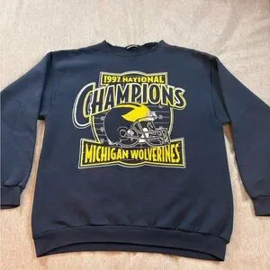 Celebrate the 1997 National Champions with this Michigan Wolverines sweatshirt. Features bold graphics in blue and yellow.