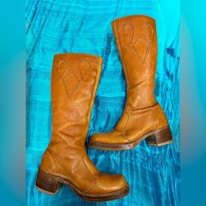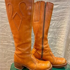 Vintage! Black Label Zipper Frye Campus Boots! These boots are absolutely perfect for any vintage lover’s closet! They are marked as a women’s 7 B, with a zipper closure and a partial expandable calf detail as well. They are in good condition with a few signs of wear, especially on the toes and backs of heels. The heel caps and soles are in good condition with a good amount of life left! They are approximately 16 inches from top to the bottom of the heel cap. Please reach out and message for any additional questions!