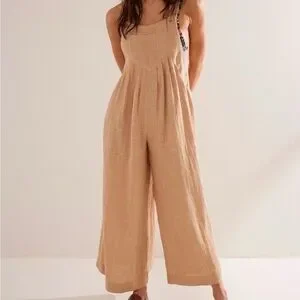 Stylish wide leg jumpsuit. Features button details. Comfortable and chic.