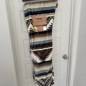 Wrangler Twin Ultra Soft Plush Blanket - Blue, Cream, Brown - NWT