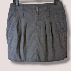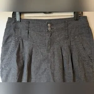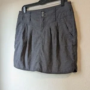 Prana Grey Pleated Hemp Blend Mid Rise Lizbeth Mini Skirt.