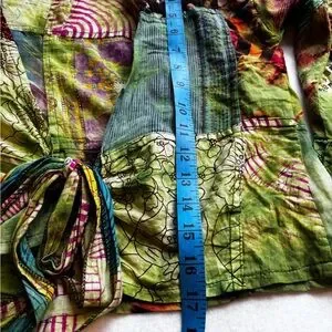 Beautiful Kathmandu Imports patchwork tie-front blouse.