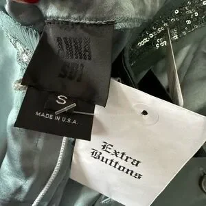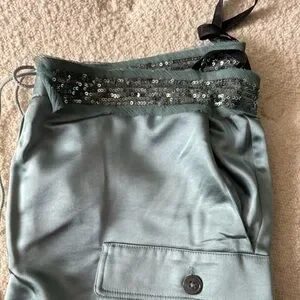 Never worn, with tags. Super unique teal silk cargo style pants with velvet and sequin detail. Great quality. Purchased from Anthropologie