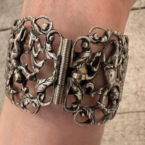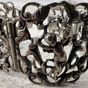 Vintage 800 European Silver Cherub Art Deco Bracelet