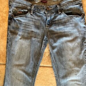 Hollister size 1 regular fit boot cut jeans for women. These jeans feature a zip and button closure, a 31-inch inseam & offers a stylish and flattering bootcut style. Good condition.