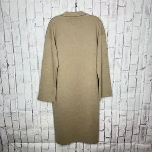 J. Crew Ella Open Front Long Sweater Blazer Sz L Merino Wool Tan Khaki AD753