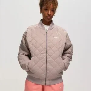 The Nike reversible Varsity Bomber Jacket is a staple you can throw on to give your look a quick boost of warmth and style. Lightly padded through the arms and body, the quilted lining is smooth and soft, making it perfect for layering when there's a chill in the air. The jacket features a full-length zipper and press-stud pockets on both sides. An embroidered Swoosh logo completes the design.