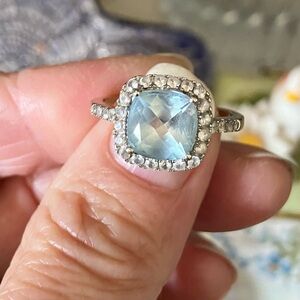 14k WG Aquamarine & Crystal Ring