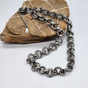 It is an unusually large double link with a wide smooth O-ring Rolo mixed with 2 hammered textured links.