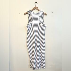 Pact organic cotton white and black striped racer back midi dress size large