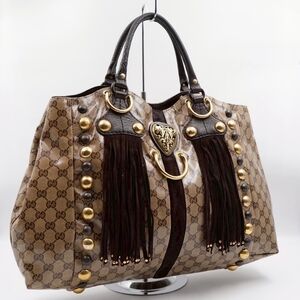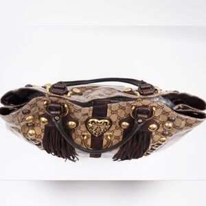 CE16 💖 GUCCI GG Crystal Canvas Babouska Heart Stud Fringe Tote Bag